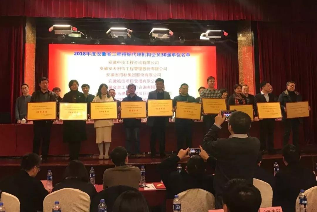 2019年12月20日,安徽省建筑工程招标投标协会五届二次理事会暨“盛唐杯”全省建设工程招标投标获奖论文交流会在合肥举行,阶梯项目咨询有限公司总裁钱捍出席会议。本次会议上,阶梯项目咨询有限公司荣获 “2018年度“安徽省工程招标代理机构30强单位”以及2017—2018年度“双满意工程招标代理机构”等荣誉称号。