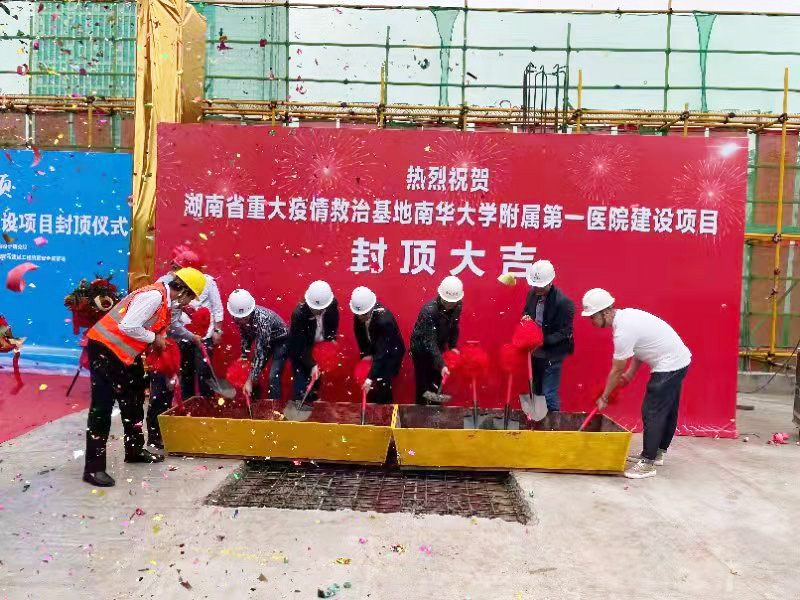 近日,湖南省重大疫情救治基地南华大学附属第一医院建设项目(EPC)封顶仪式在南华大学附属第一医院内施工现场举行,相关领导和员工代表共同出席封顶仪式。