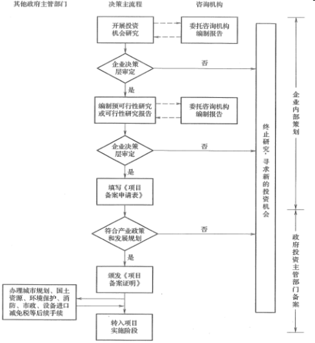 要为投资人做好前期咨询服务工作,首先要明确服务工作内容。由于固定资产投资类别不同、投资性质不同,投资决策流程不同,服务的内容也不同。如按投资主体分类有政府投资项目、企业单位投资项目等,政府投资项目一般为审批制,企业投资项目依据《政府核准的投资项目目录(2016年本)》,可分为核准制和备案制。