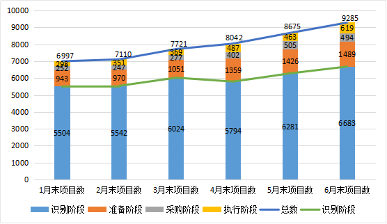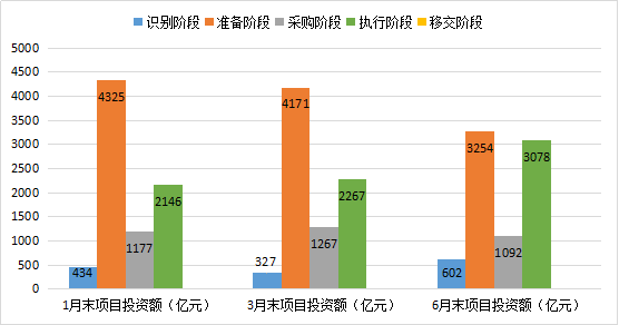 注:6月末识别阶段项目数比3月末减少但投资额增加,原因是少数投资额大的项目在一季度填报的阶段信息有误,二季度更正为识别阶段。