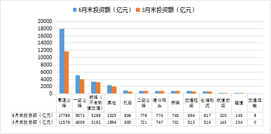 图2-4-8 6月末与3月末交通运输类PPP项目投资额对比