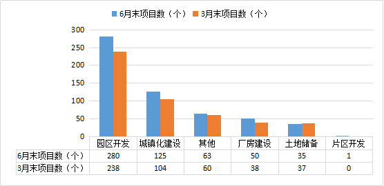下面分别介绍市政工程、交通运输、片区开发项目数、投资额及其与3月末比较情况。