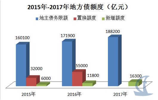 2017年地方债务限额18.82万亿(2015年16.01万亿,2016年17.19万亿)。