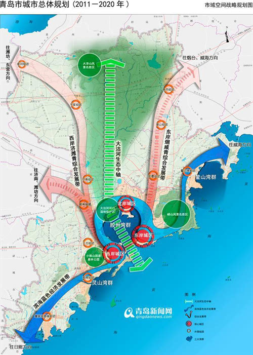 今年1月8日,国务院正式批复《青岛市城市总体规划(2011-2020年)》。日前,记者从规划部门获悉,新一版《总体规划》已经出炉,根据“全域统筹、三城联动、轴带展开、生态间隔、组团发展”城市空间战略,青岛将建设组团式海湾型宜居幸福的现代化国际城市。