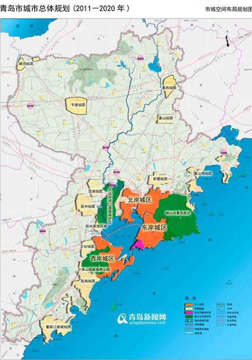 ◆北岸城区:是青岛市域城镇布局的空间中枢,以高水平打造科技型、生态型、人文型新城区为目标,合理控制开发时序,为建设青岛市未来的公共服务和公共管理中心预留发展空间。