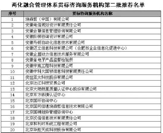 近日,工业和信息化部信息化和软件服务业司发布了《关于推荐信息化和工业化融合管理体系贯标咨询服务机构的通知》,依托中国两化融合服务联盟开展了新一批贯标咨询服务机构的遴选和培育工作。通过专家评审、考核等程序,安徽阶梯咨询设计有限公司普升两化融合管理体系贯标咨询服务机构。