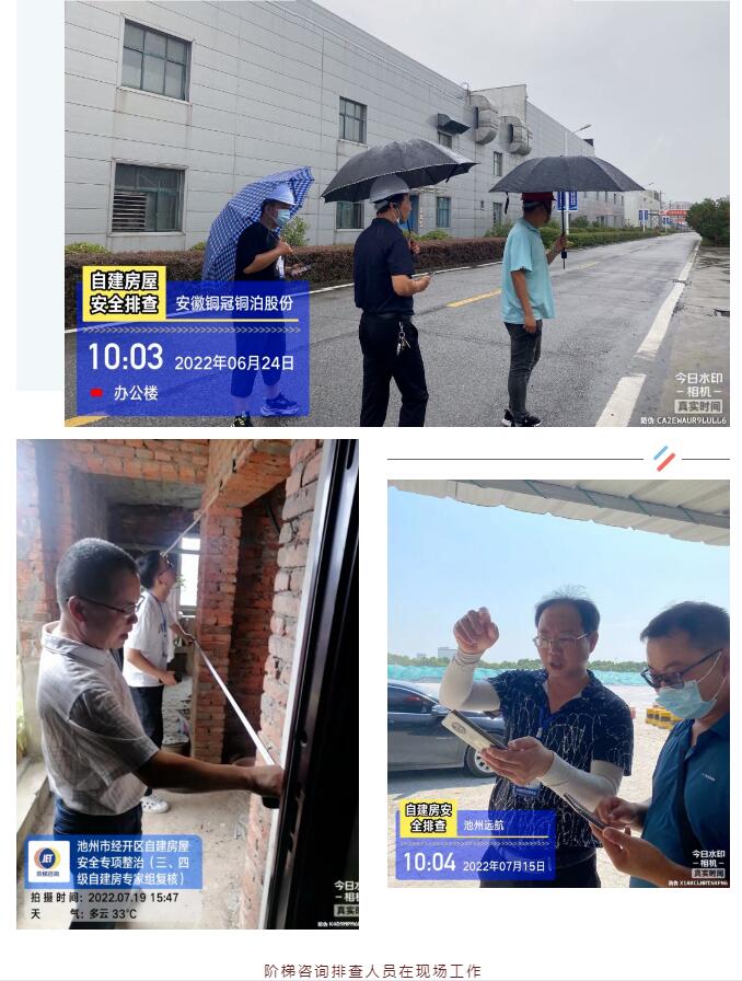 负责该项排查任务的阶梯咨询项目管理与工程监理中心, 强化红线意识和底线思维,抽调精兵强将,以时不我待的紧迫感,战高温、斗酷暑,认真细致地开展专业排查,目前已完成经开区经营性自建房62户、自住性自建房293户、商品房门面415户、厂房917栋(建筑面积约320万㎡)的房屋排查工作,正紧张有序地进行相关信息归档、录入、分析等工作。