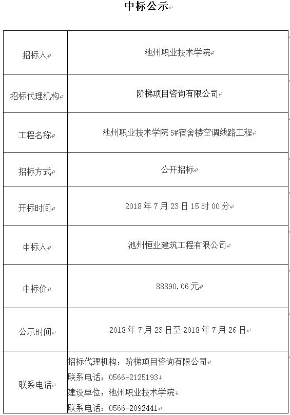 池州职业技术学院5#宿舍楼空调线路安装工程中标公示.docx